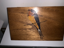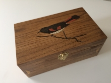 Artist Mike Johnson carves his unique designs into decorative wooden boxes and working clocks made from wooden boxes and wood panels. These designs often include a technique he calls "illusion inlay".