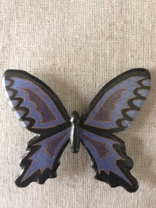 Hand Carved Black/blue butterfly Pin